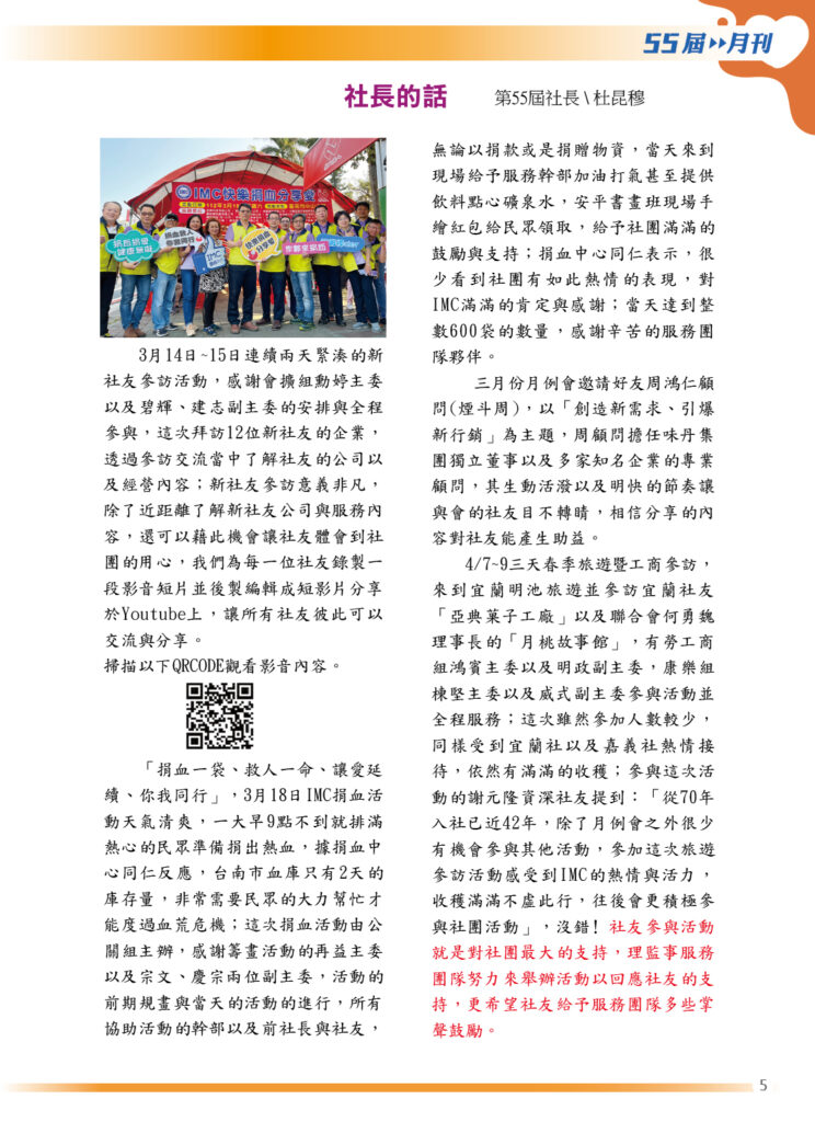 Home » 第55屆四月月刊社長的話