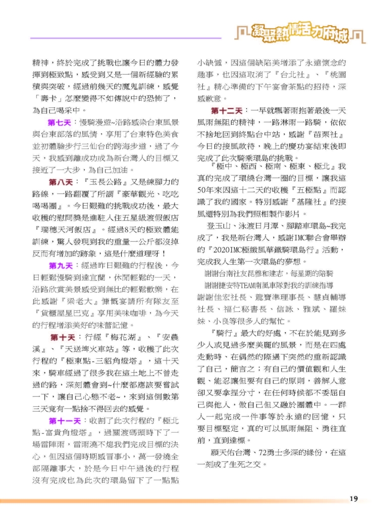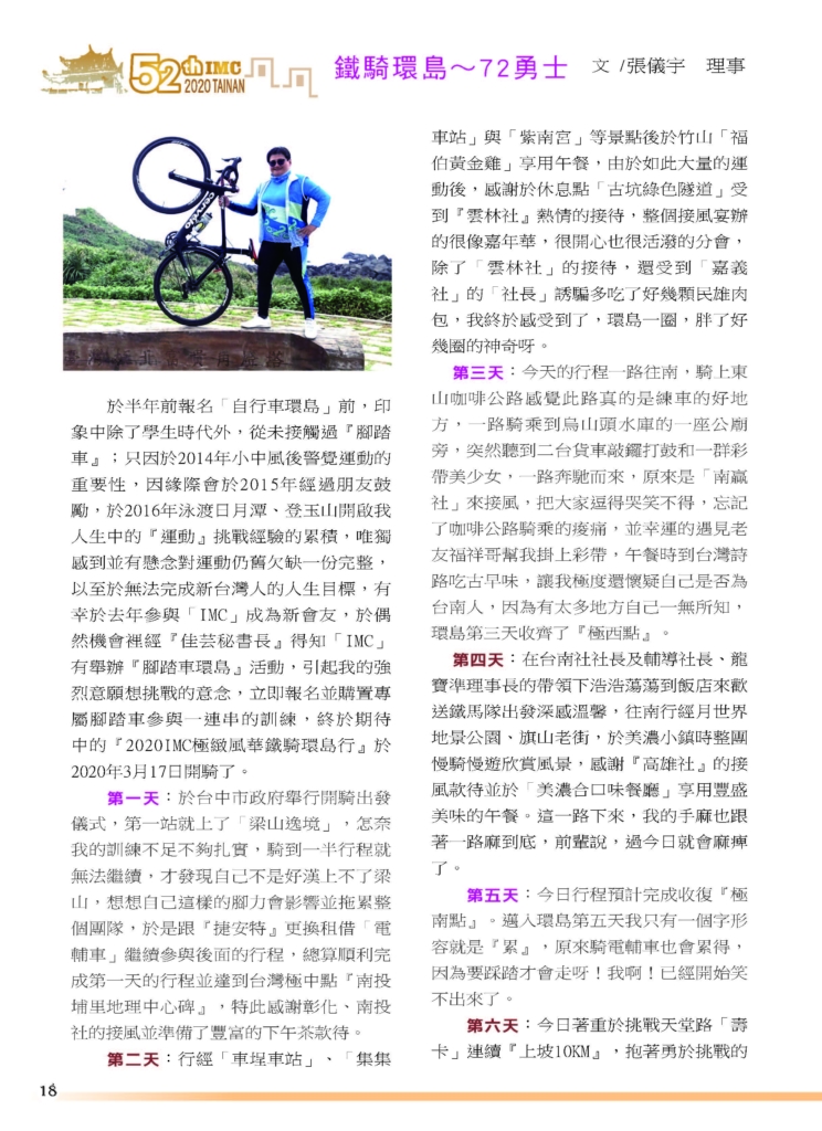 鐵騎環台~72勇士 -張儀宇理事 it2020-07-23T14:58:57+08:0019 5 月, 2020|最新消息, 社友分享| FacebookXRedditLinkedInWhatsAppTumblrPinterestVkXingEmail: 相關文章: 台南IMC第58屆三月份電子月刊 台南IMC第58屆三月份電子月刊 20260315愛心公益捐血活動 20260315愛心公益捐血活動 台南IMC第58屆二月份電子月刊 台南IMC第58屆二月份電子月刊 第57-58年會交接特刊 第57-58年會交接特刊