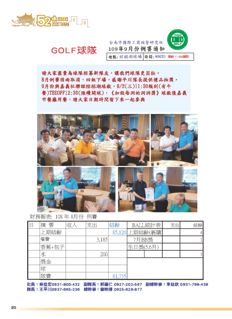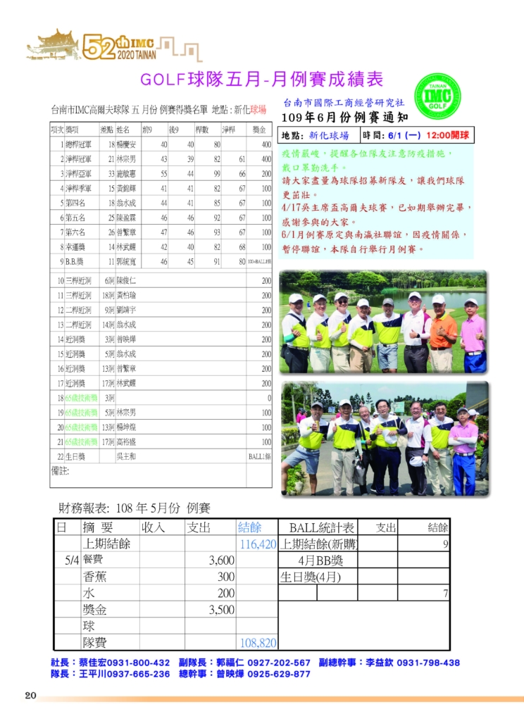第52屆高爾夫球隊-五月例賽成績表暨六月例賽通知