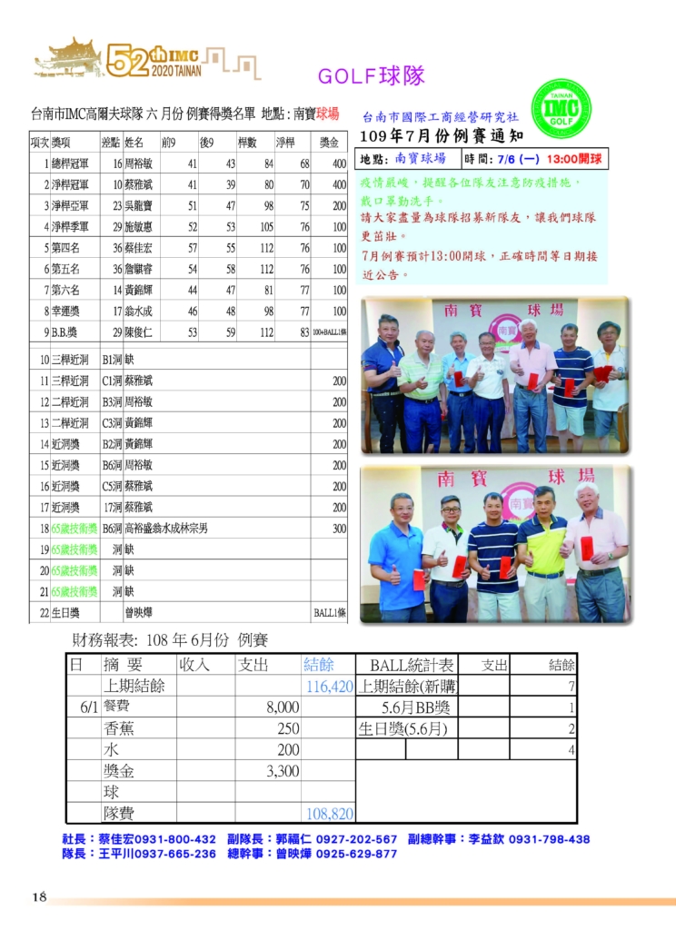 第52屆高爾夫球隊-六月例賽成績表暨七月例賽通知