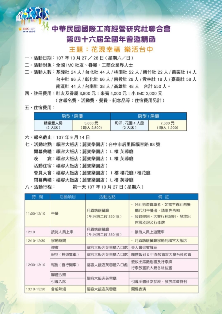 20181027-28 聯合會第46屆全國年會邀請函 it2018-12-29T22:53:17+08:0013 8 月, 2018|最新消息, 活動資訊| FacebookXRedditLinkedInWhatsAppTumblrPinterestVkXingEmail: 相關文章: 台南IMC第58屆四月份電子月刊 台南IMC第58屆四月份電子月刊 台南IMC第58屆三月份電子月刊 台南IMC第58屆三月份電子月刊 20260315愛心公益捐血活動 20260315愛心公益捐血活動 台南IMC第58屆二月份電子月刊 台南IMC第58屆二月份電子月刊