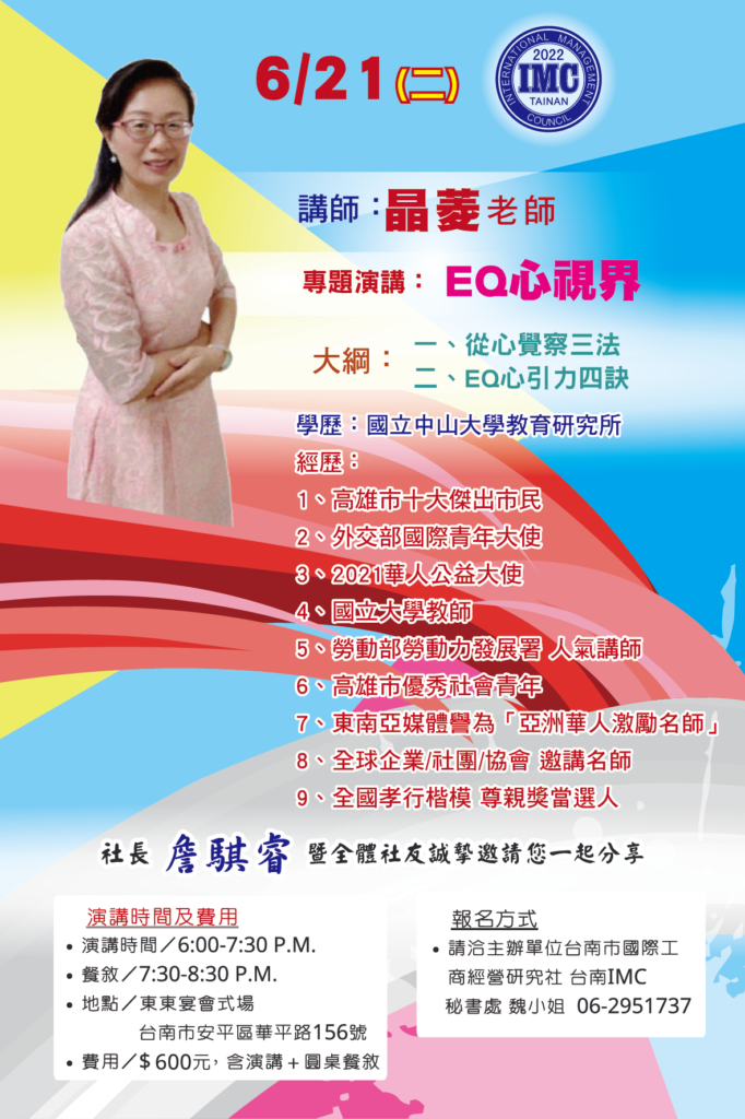 2022.06.21月例會講師 ad2022-06-20T10:14:16+08:0020 6 月, 2022|最新消息, 月例會| FacebookXRedditLinkedInWhatsAppTumblrPinterestVkXingEmail: 相關文章: 台南IMC第58屆三月份電子月刊 台南IMC第58屆三月份電子月刊 20260315愛心公益捐血活動 20260315愛心公益捐血活動 台南IMC第58屆二月份電子月刊 台南IMC第58屆二月份電子月刊 2026120元月份月例會-邀請梅國卿策略長蒞會演講 2026120元月份月例會-邀請梅國卿策略長蒞會演講