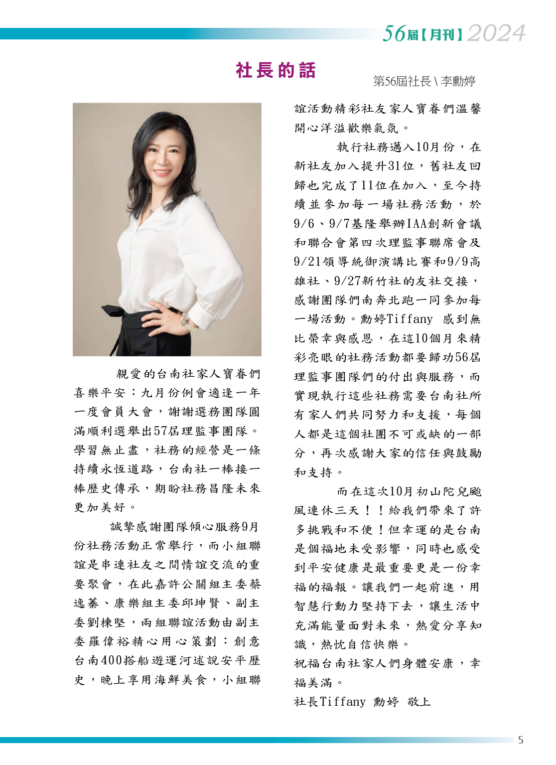 第56屆十月月刊社長的話